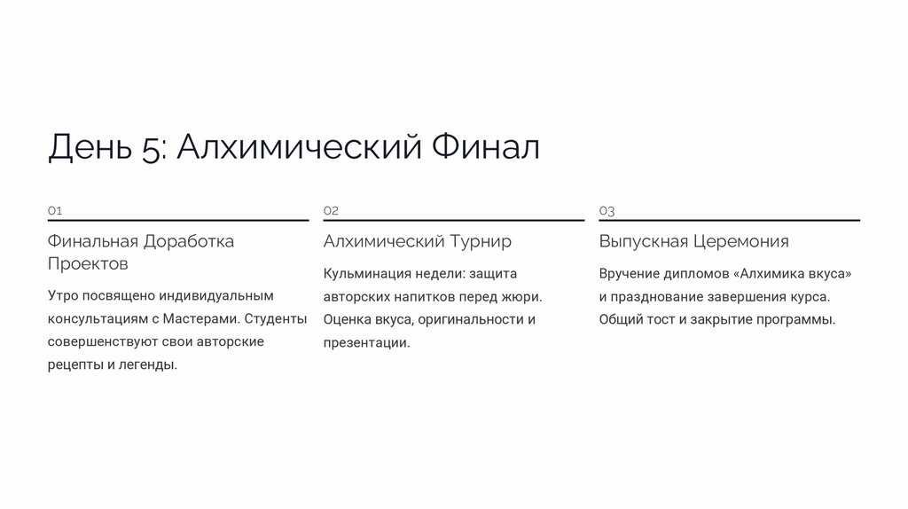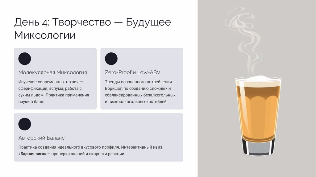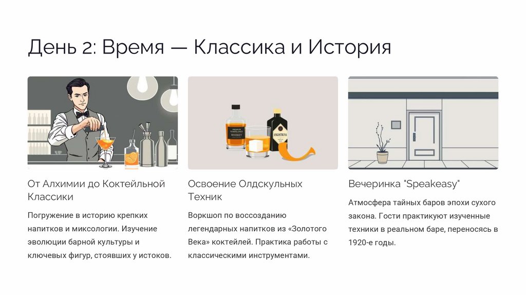 День 2: Время — Классика и ИсторияОт Алхимии до Коктейльной