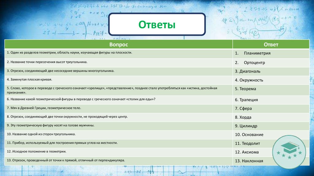 Вопрос №6Название какой геометрической фигуры в переводе с