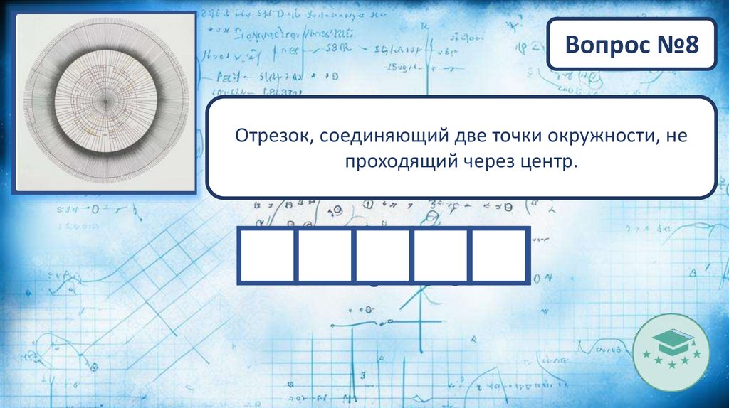 8. Отрезок, соединяющий две точки окружности, не проходящий через центр.