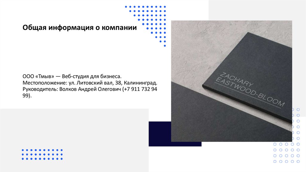 Общая информация о компанииООО «Тмыв» — Веб-студия для бизнеса.
