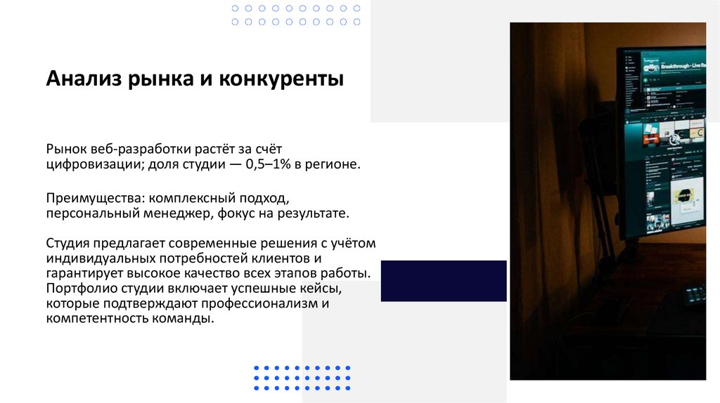 Анализ рынка и конкурентыРынок веб-разработки растёт за счёт