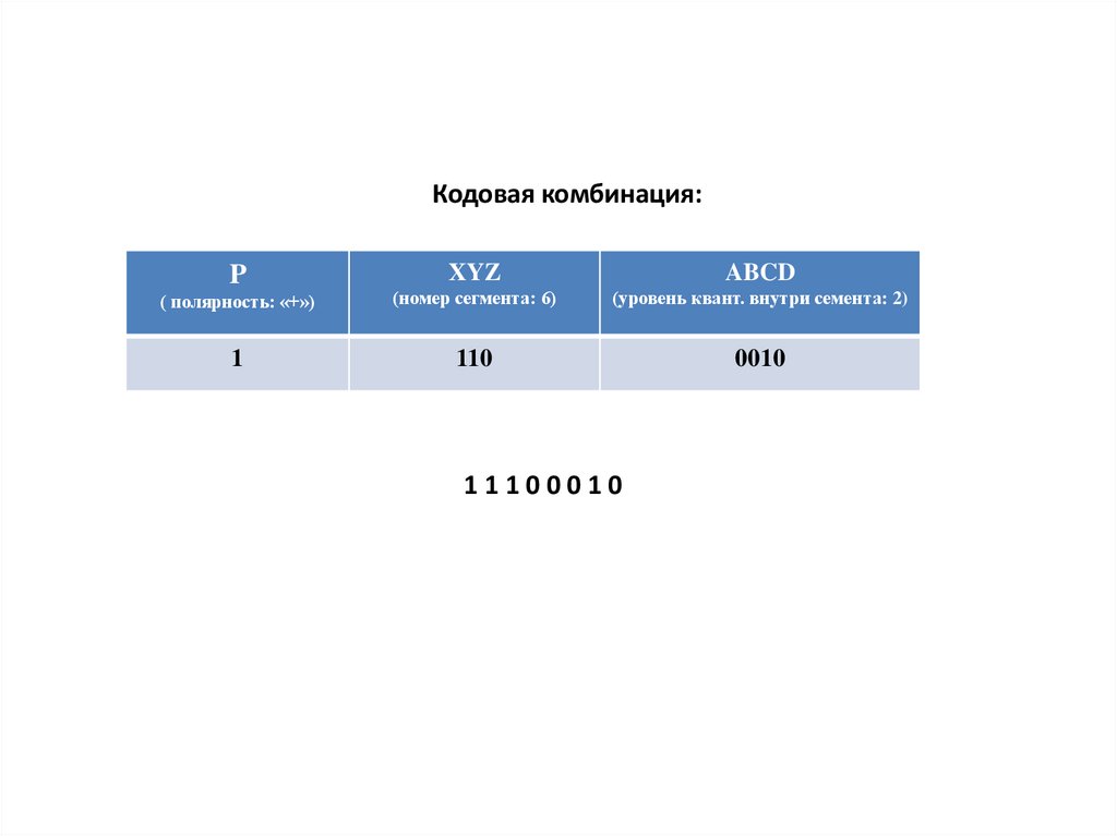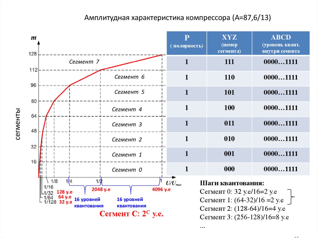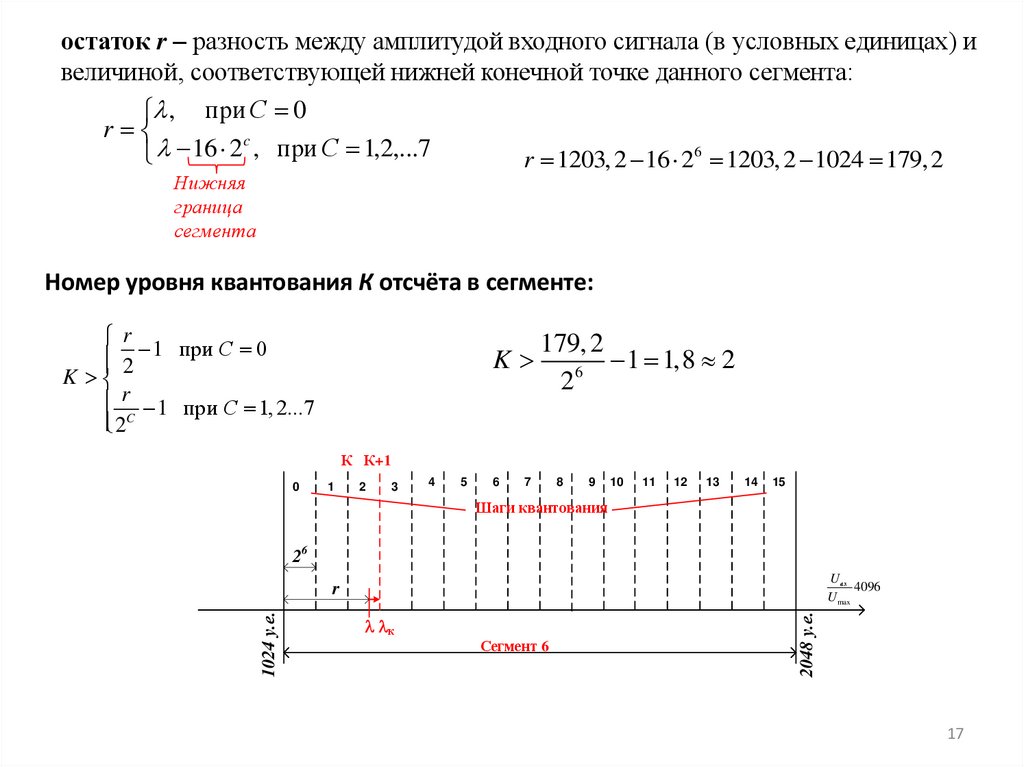 Номер уровня квантования К отсчёта в сегменте: