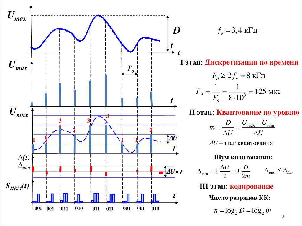 1. Дискретизация сигнала по времени2. Квантование отсчетов по уровню