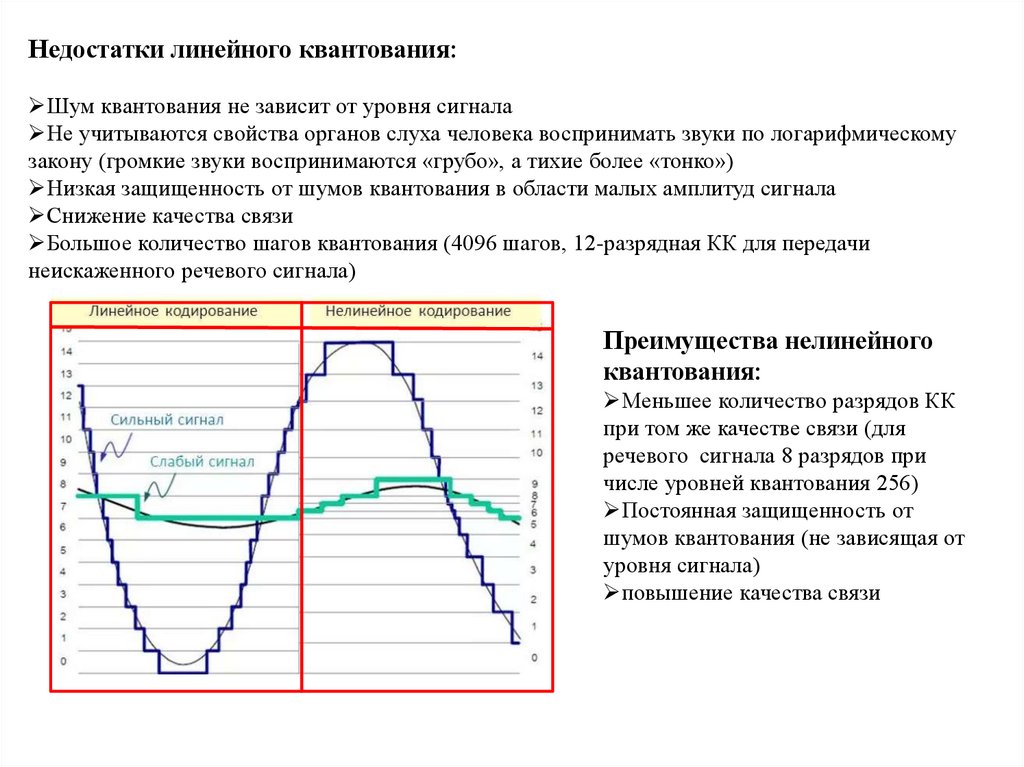 Недостатки линейного квантования:Шум квантования не зависит от уровня сигнала