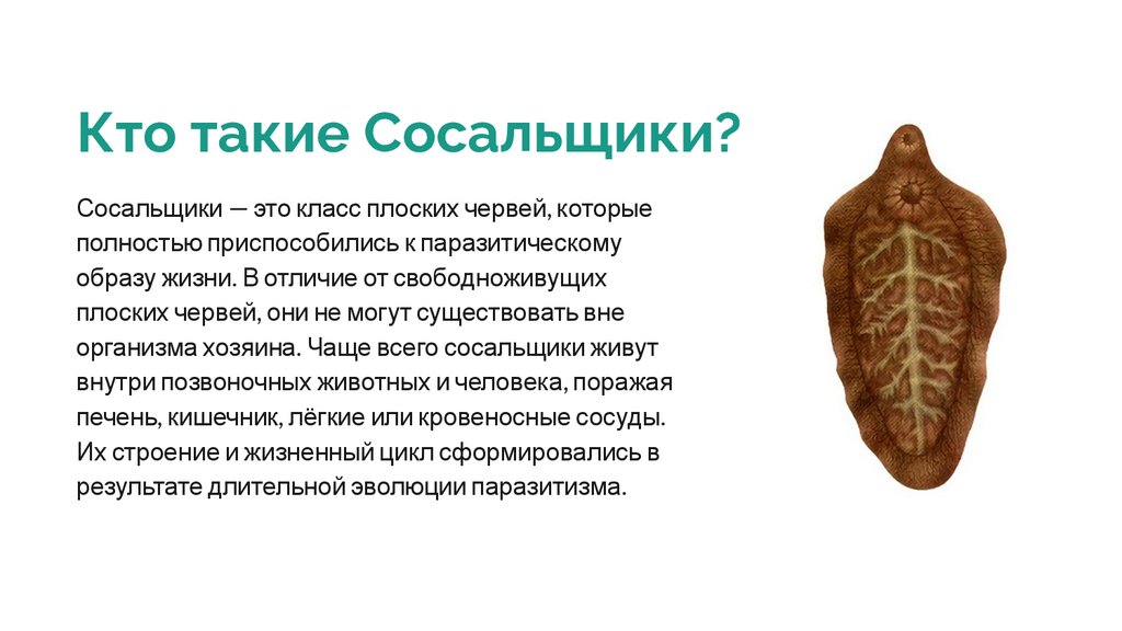 Кто такие Сосальщики?Сосальщики — это класс плоских червей, которые