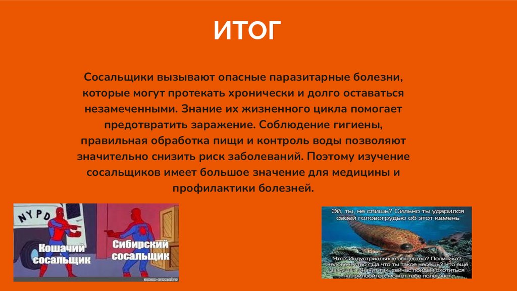 ИТОГСосальщики вызывают опасные паразитарные болезни,