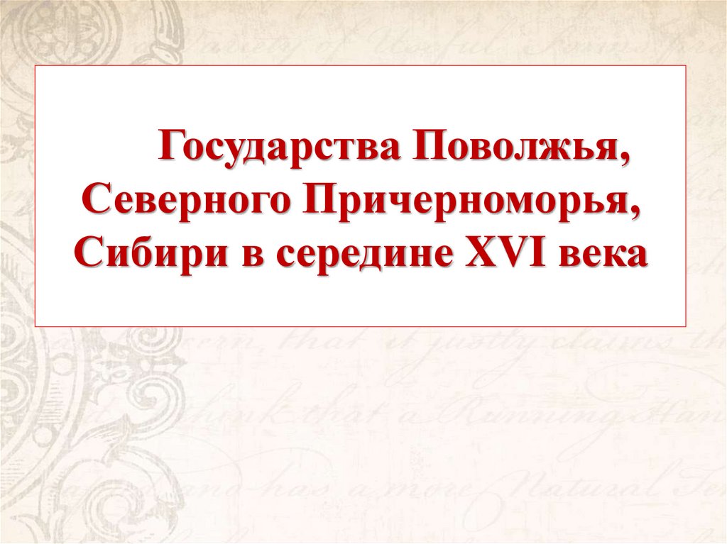 1. Государства Поволжья, Северного Причерноморья, Сибири в середине XVI века