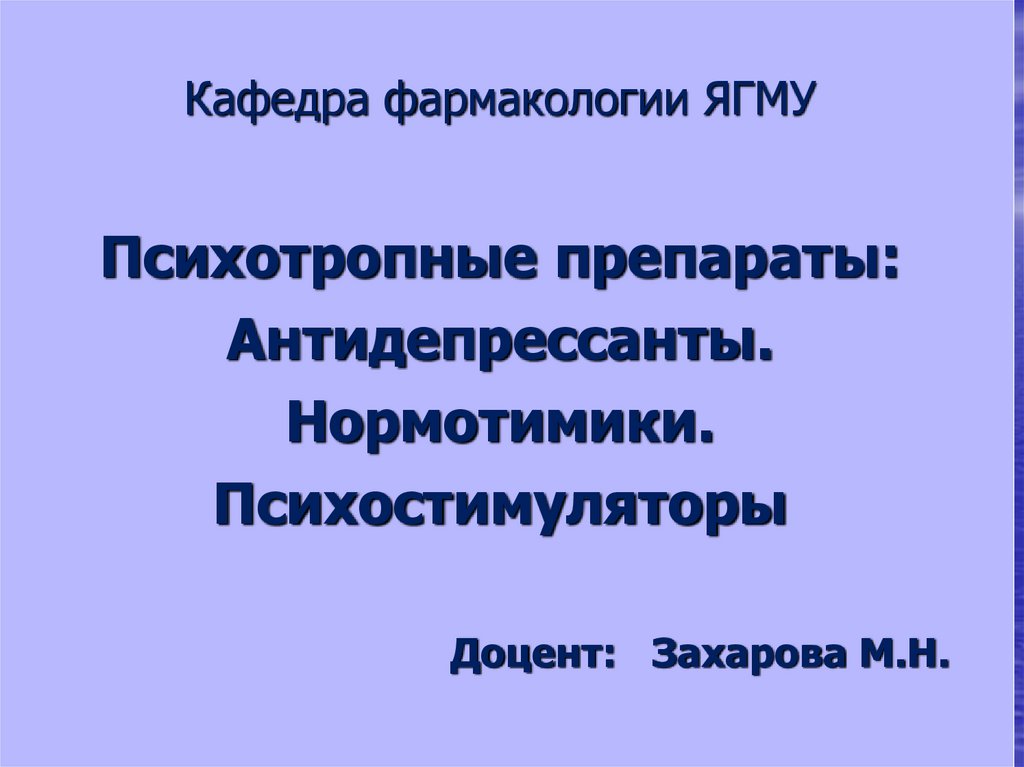 Кафедра фармакологии ЯГМУПсихотропные препараты: