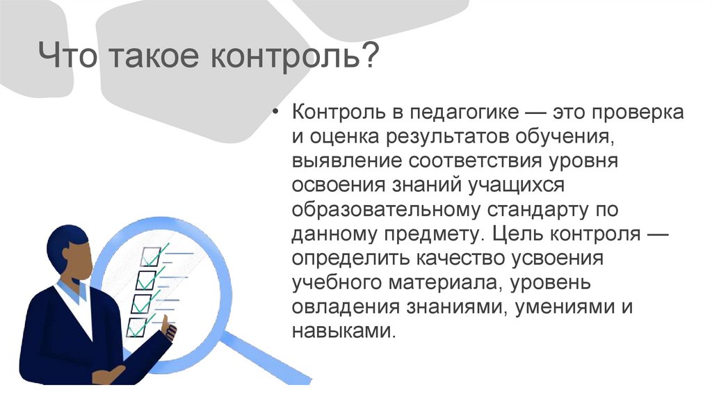 Виды контроля. Формы иметоды контроля. Виды тестов