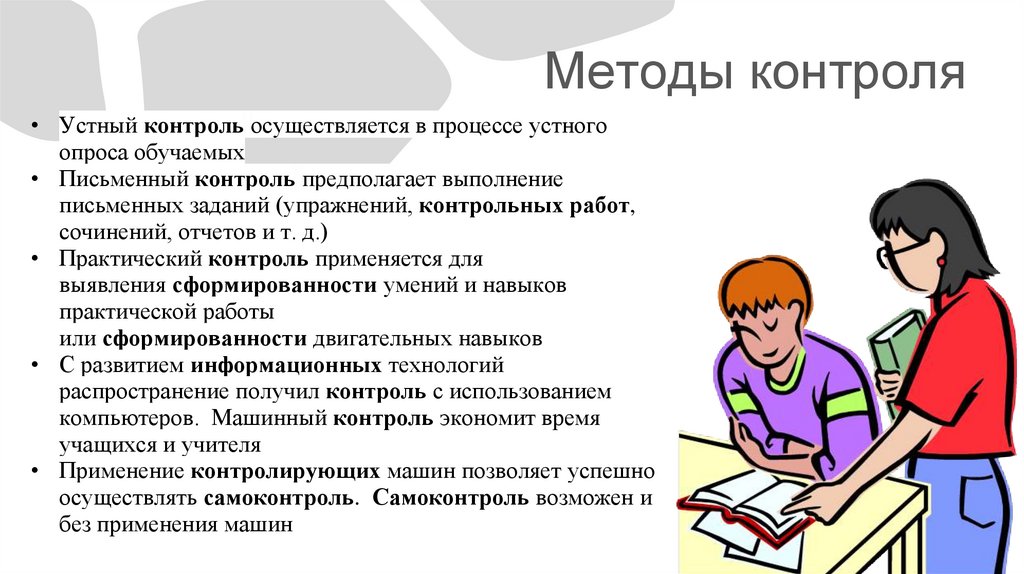 Методы контроля• Устный контроль осуществляется в процессе устного