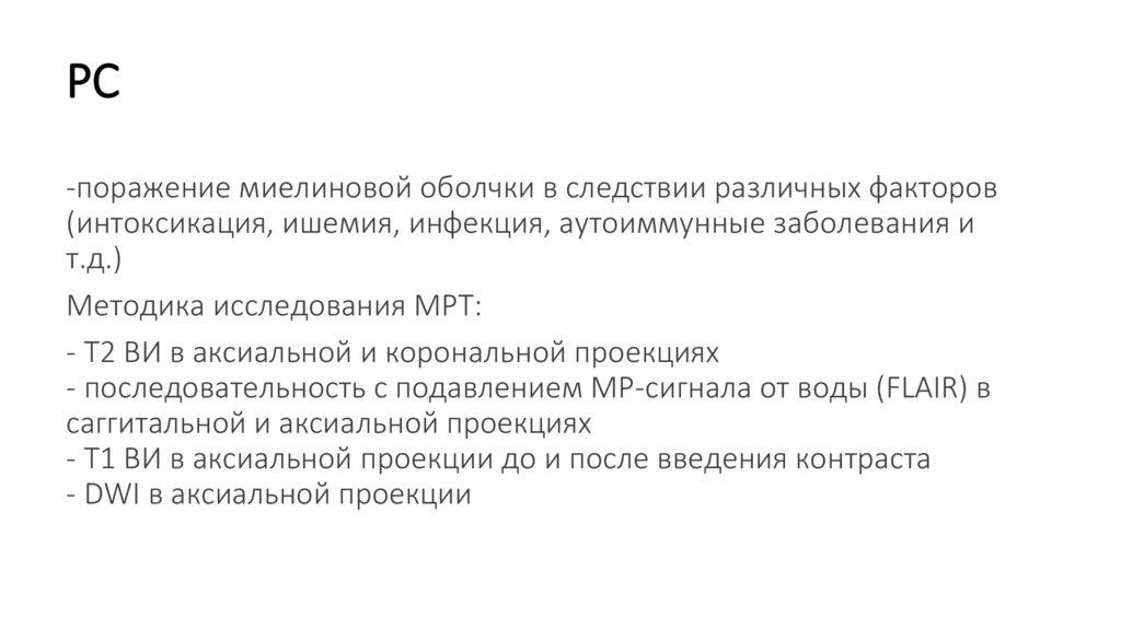 РС-поражение миелиновой оболчки в следствии различных факторов
