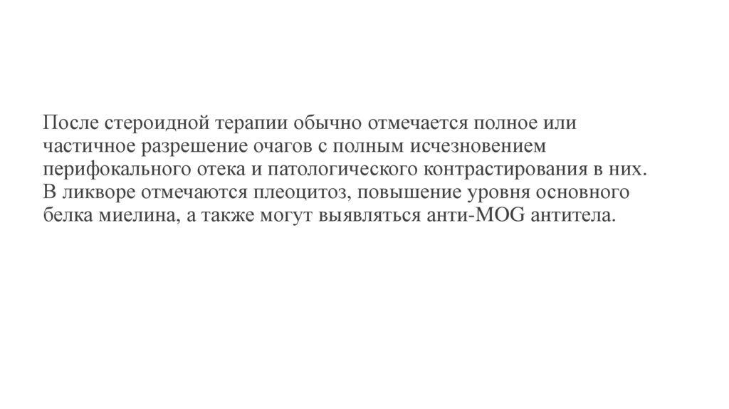 белка миелина, а также могут выявляться анти-MOG антитела.