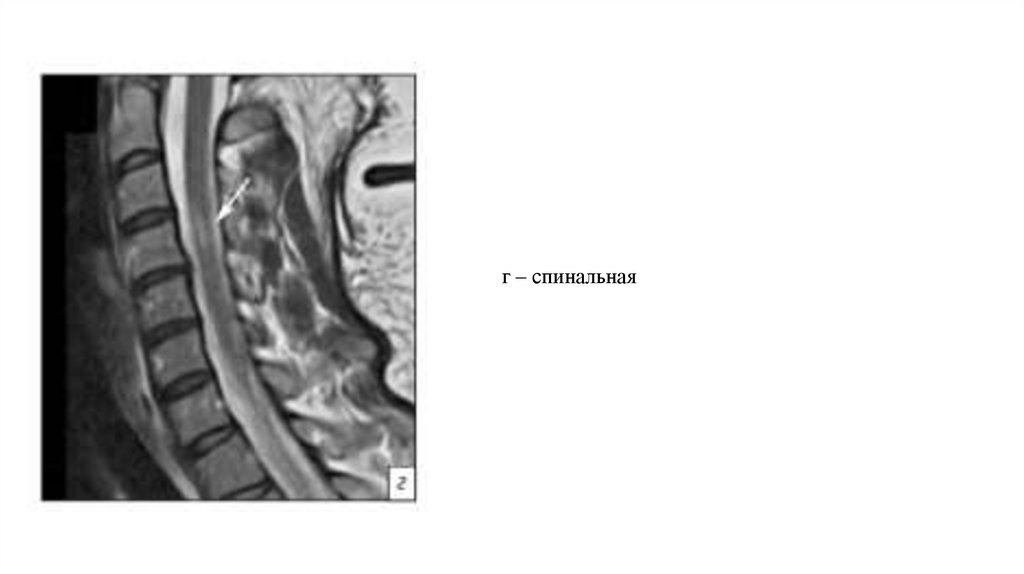 спинного мозга, имеют более высокий сигнал на Т2-ВИ, приближаясь к интенсивности