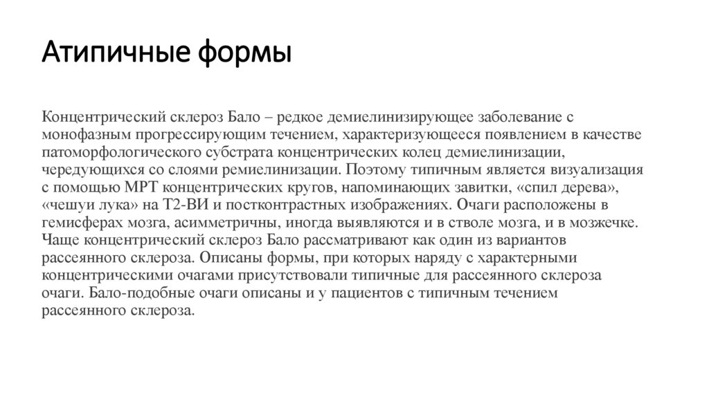 Атипичные формыКонцентрический склероз Бало – редкое демиелинизирующее заболевание с