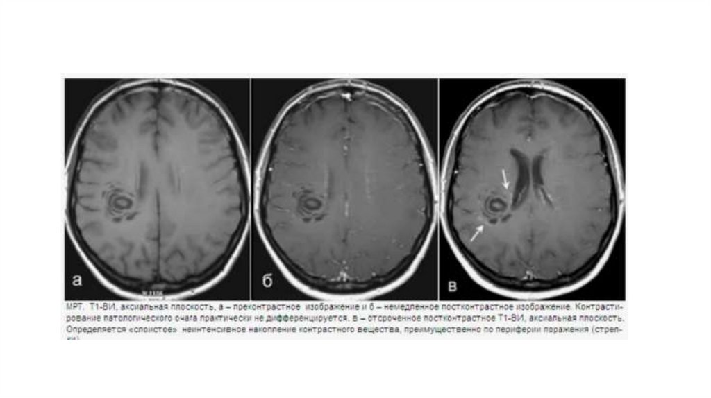 супратенториальными (в) – по типу кольца (стрелка), полукольца (пунктирная стрелка),