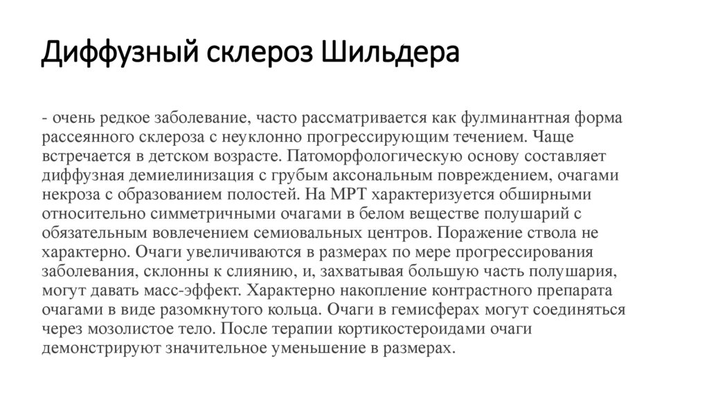 Диффузный склероз Шильдера- очень редкое заболевание, часто рассматривается как фулминантная форма