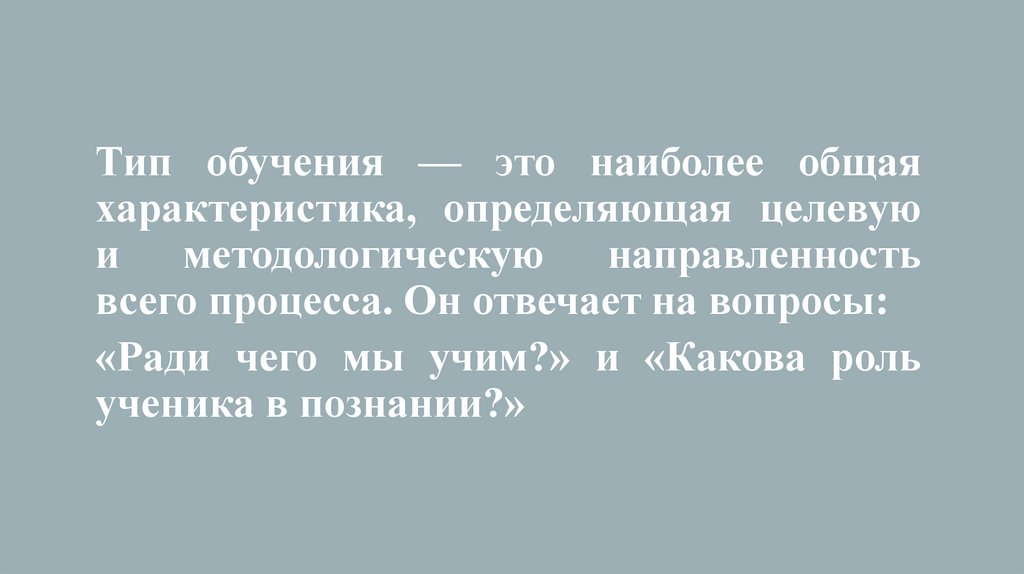 Тип обучения — это наиболее общаяхарактеристика, определяющая целевую