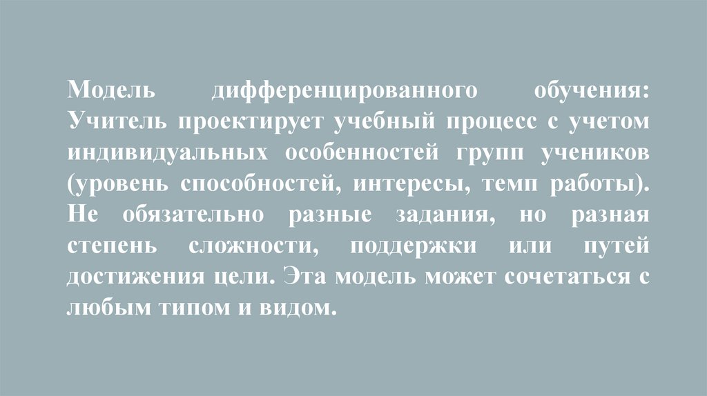 (уровень способностей, интересы, темп работы).