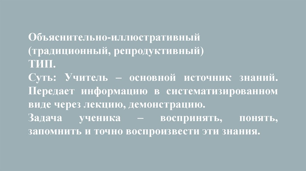 Объяснительно-иллюстративный(традиционный, репродуктивный)