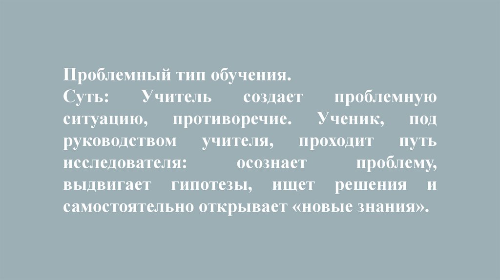 Проблемный тип обучения.Суть: