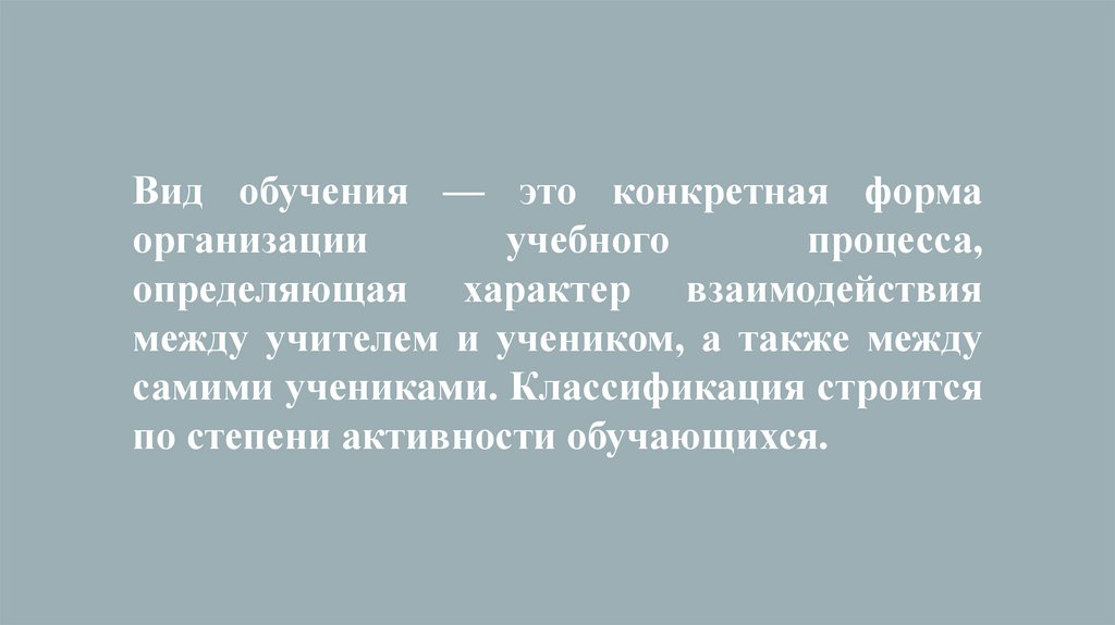 Вид обучения — это конкретная формаорганизации
