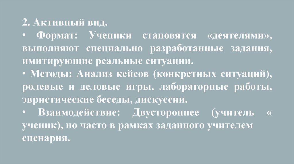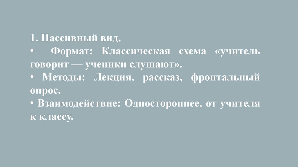 1. Пассивный вид.Формат: Классическая схема «учитель