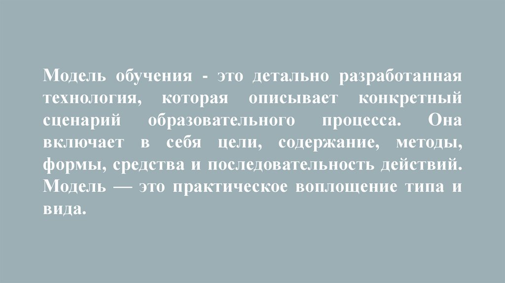 Модель обучения - это детально разработаннаятехнология, которая описывает конкретный