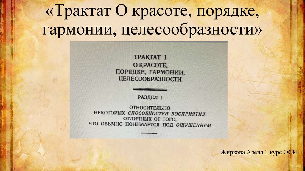 1. «Трактат О красоте, порядке, гармонии, целесообразности»