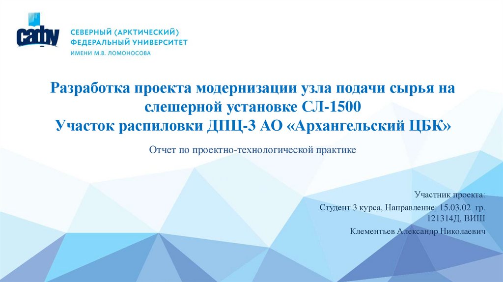 1. Разработка проекта модернизации узла подачи сырья на слешерной установке СЛ-1500 Участок распиловки ДПЦ-3 АО «Архангельский