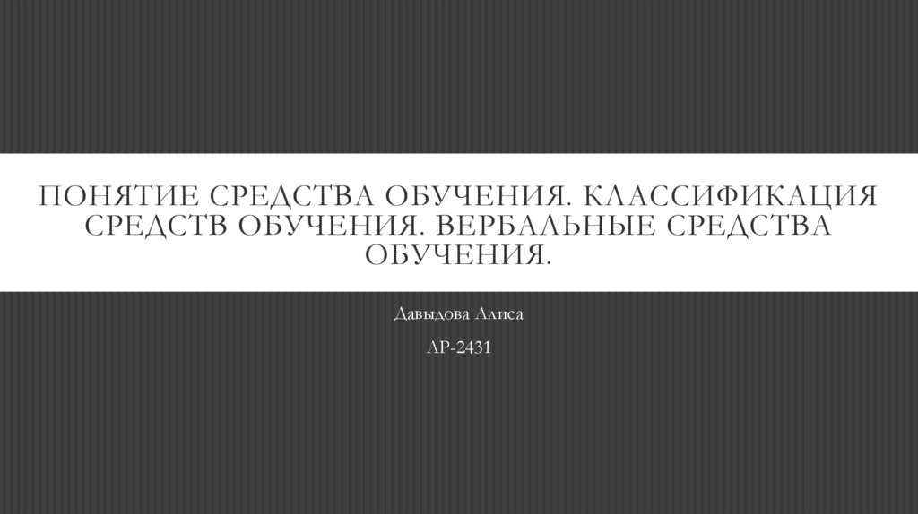 ПОНЯТИЕ СРЕДСТВА ОБУЧЕНИЯ. КЛАССИФИКАЦИЯСРЕДСТВ ОБУЧЕНИЯ. ВЕРБАЛЬНЫЕ СРЕДСТВА