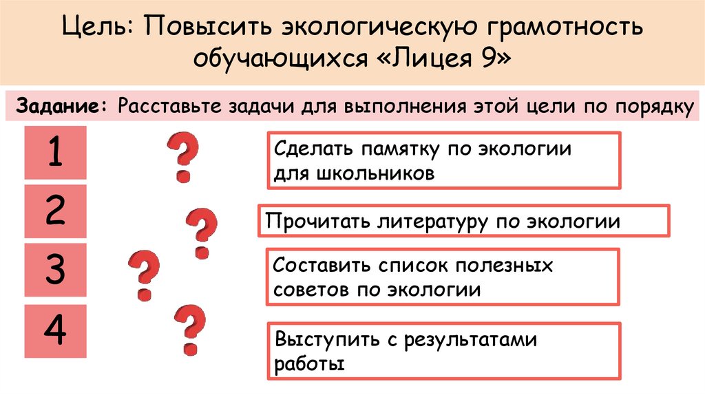 Цель: Повысить экологическую грамотностьобучающихся «Лицея 9»