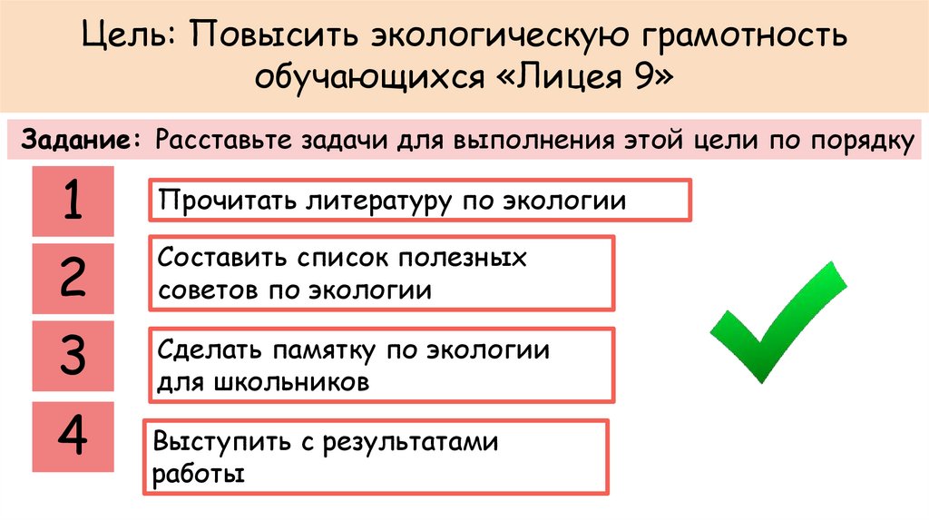 Задание: Расставьте задачи для выполнения этой цели по порядку