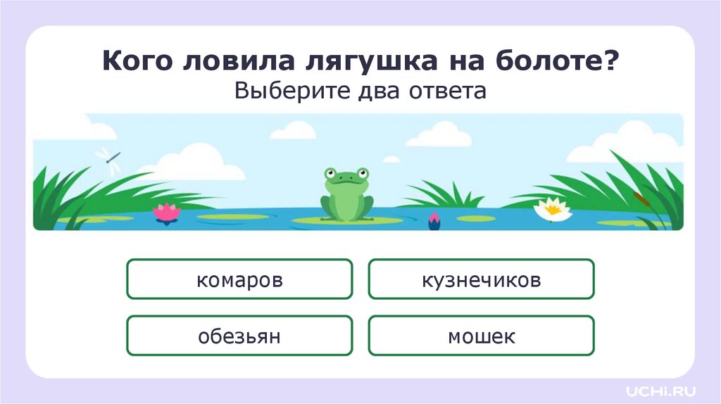 Жила-была на свете лягушка-квакушка.Сидела она в болоте, ловила комаров да