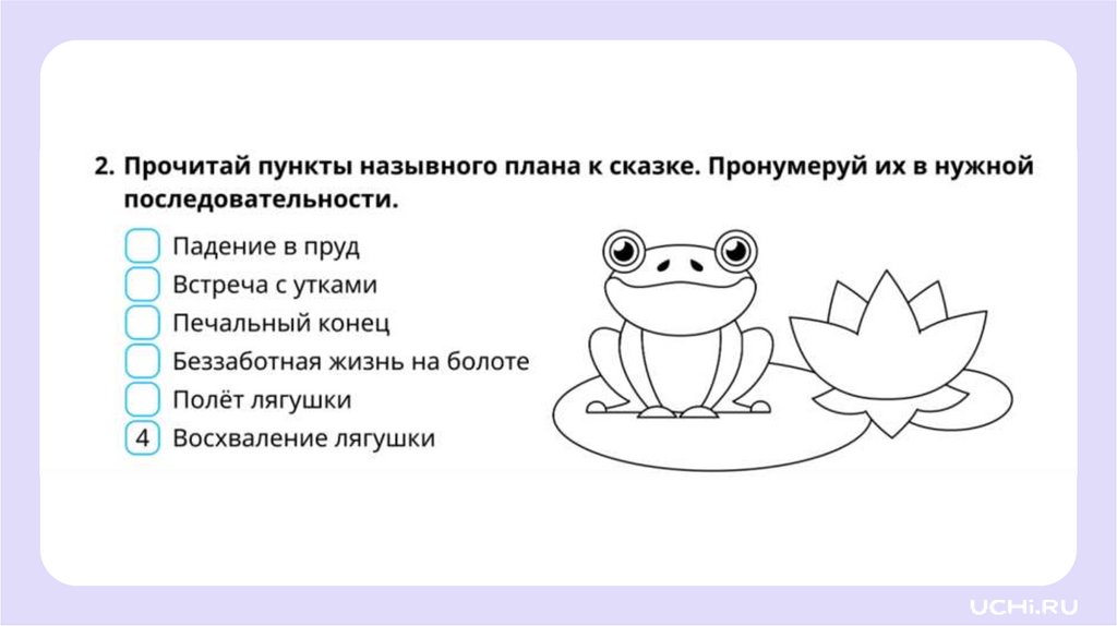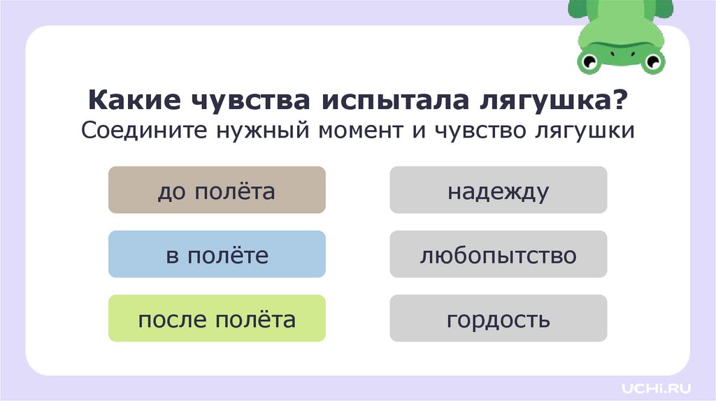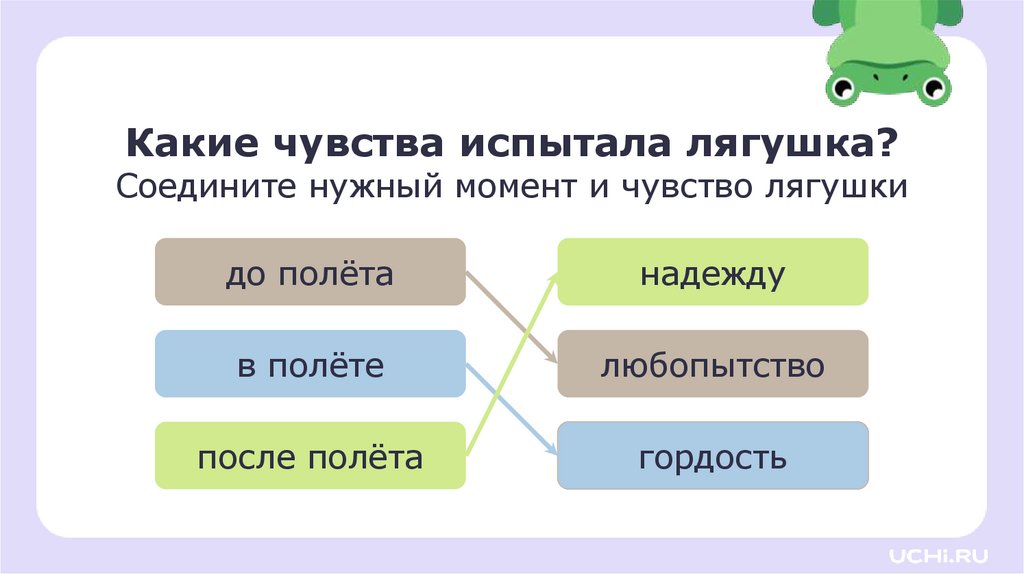 Какие чувства испытала лягушка?Соедините нужный момент и чувство лягушки