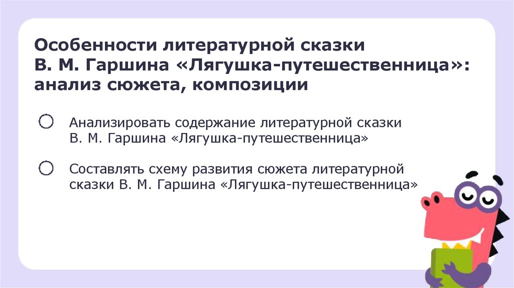 Особенности литературной сказкиВ. М. Гаршина «Лягушка-путешественница»: