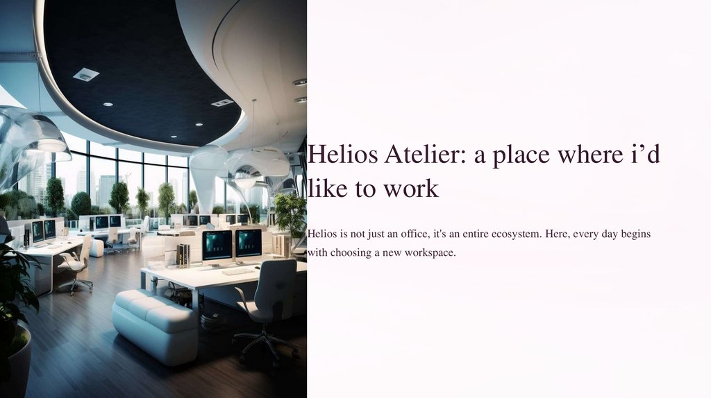 Helios is not just an office, it's an entire ecosystem. Here, every day begins