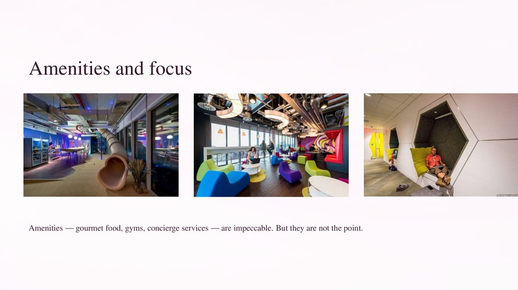 Amenities and focusAmenities — gourmet food, gyms, concierge services — are impeccable. But they are not the point.
