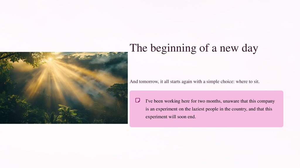 The beginning of a new dayAnd tomorrow, it all starts again with a simple choice: where to sit.