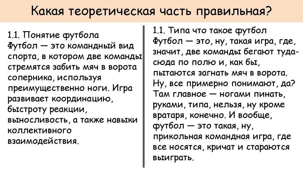 Какая теоретическая часть правильная?1.1. Понятие футбола