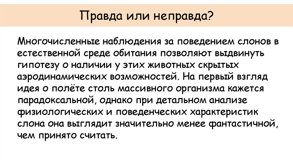 Правда или неправда?Многочисленные наблюдения за поведением слонов в