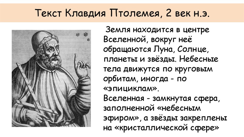Текст Клавдия Птолемея, 2 век н.э.Земля находится в центре