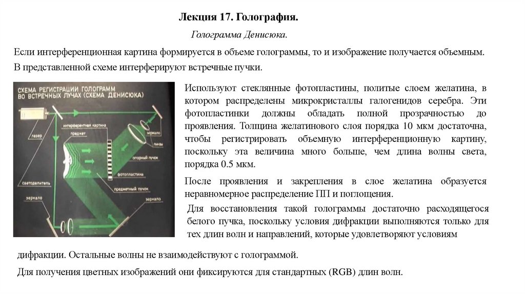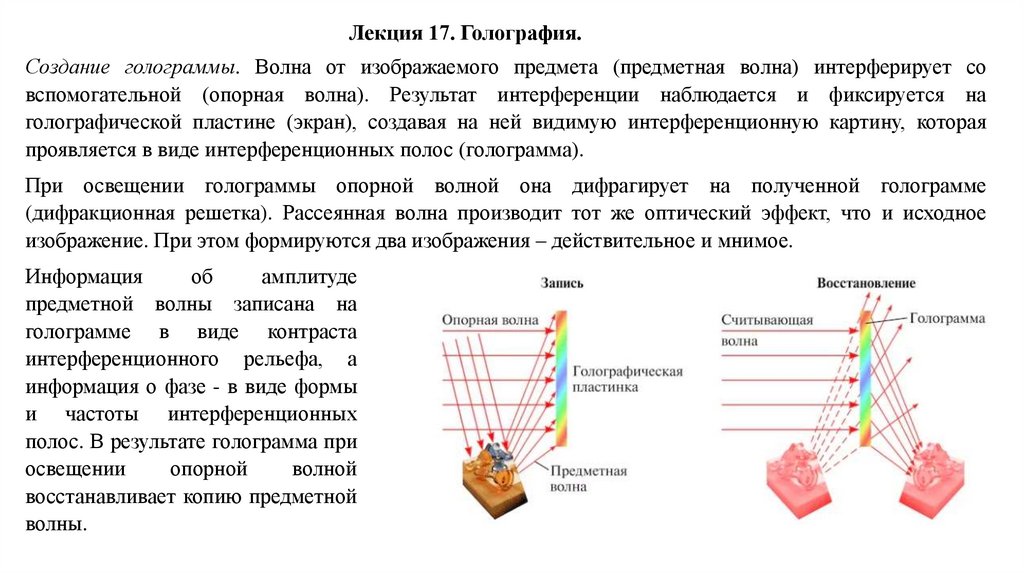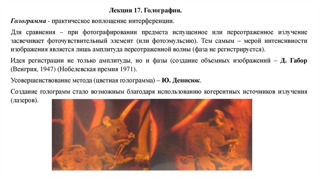 Лекция 17. Голография.Голограмма - практическое воплощение интерференции.