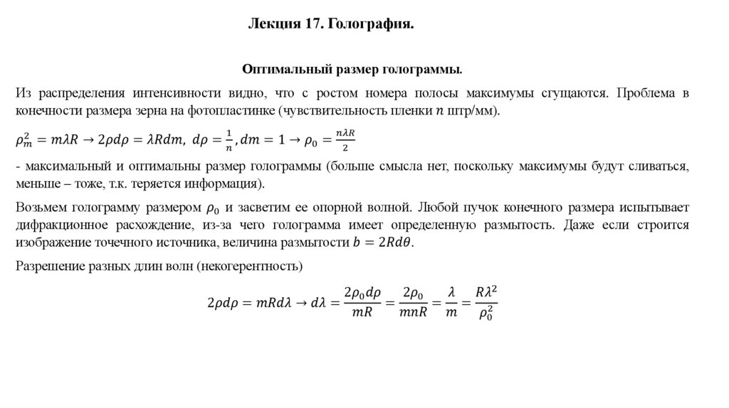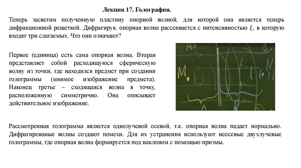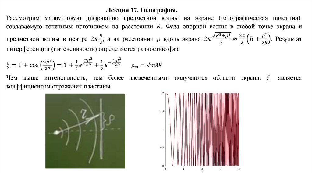 Лекция 17. Голография.Рассмотрим малоугловую дифракцию предметной волны на экране (голографическая пластина),