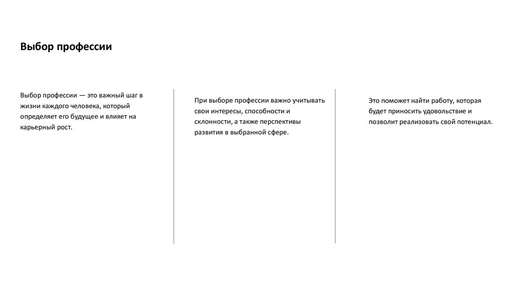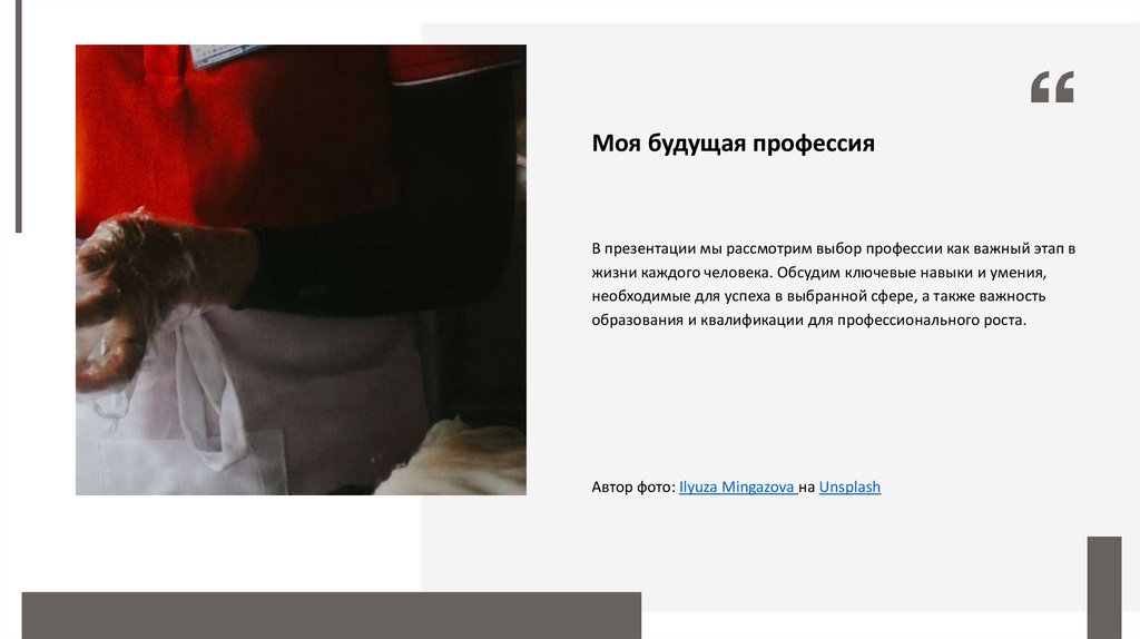 Моя будущая профессияВ презентации мы рассмотрим выбор профессии как важный этап в