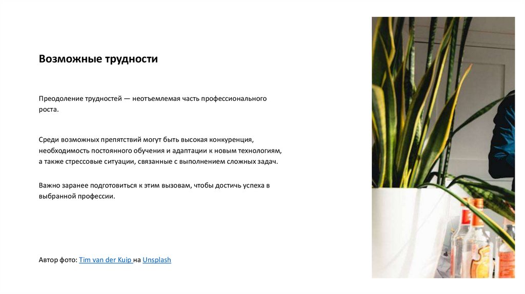 Возможные трудностиПреодоление трудностей — неотъемлемая часть профессионального