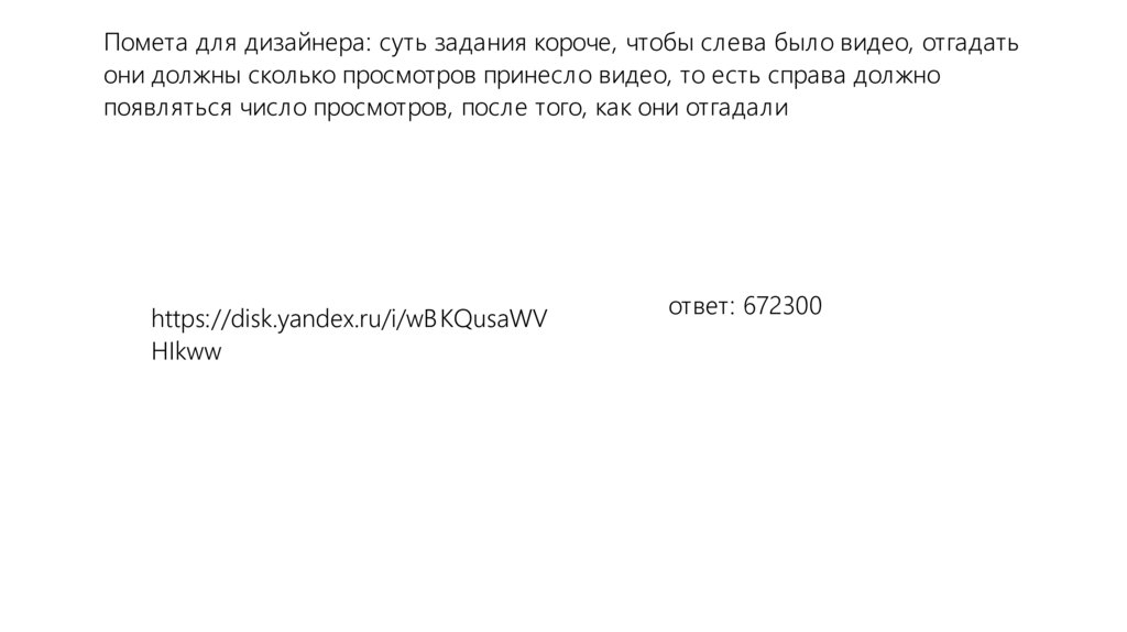 Помета для дизайнера: суть задания короче, чтобы слева было видео, отгадатьони должны сколько просмотров принесло видео, то есть справа должно