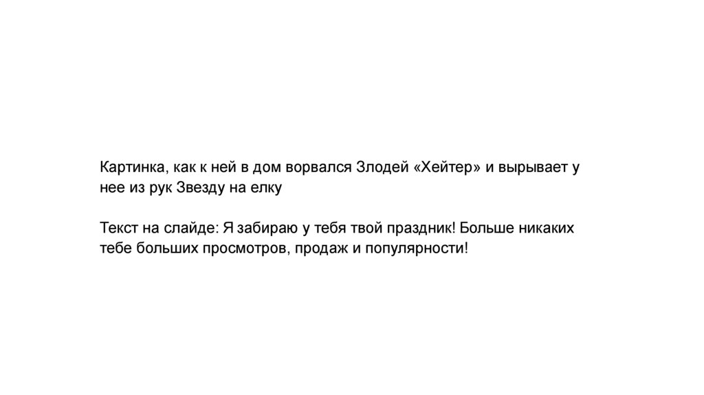 Картинка, как к ней в дом ворвался Злодей «Хейтер» и вырывает унее из рук Звезду на елку