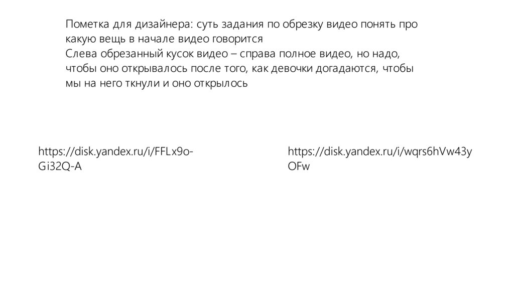 Пометка для дизайнера: суть задания по обрезку видео понять прокакую вещь в начале видео говорится