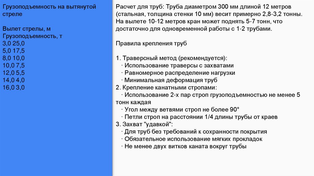 (грузоподъемностью 50 тонн). Для труб длиной до 12 метров достаточно крана грузоподъемностью