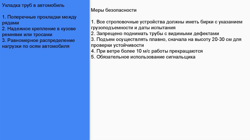 Укладка труб в автомобиль1. Поперечные прокладки между